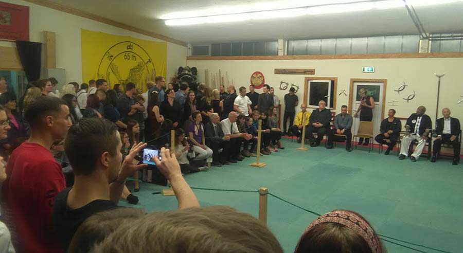 Grossmeister Martin Sewer nutzte die Gelgenheiten natürlich, um an den Feierlichkeiten nach dem Turnier Zeit mit seinen Kung Fu Brüdern- und Freunden zu verbringen und sich mit ihnen auszutauschen. Darunter natürlich auch Sifu Alex Czech selbst, Grossmeister Huang Chien-Lang, Grossmeister Steve L. Martin, Sifu Frank Greinacher und Sifu Gregor Eichenauer. Natürlich durften bei der abendlichen Jubeläumsfeier auch die Demonstrationen der Ehrengäste nicht fehlen, was die Feier mit Buffet und Film schlussendlich würdig abrundete.