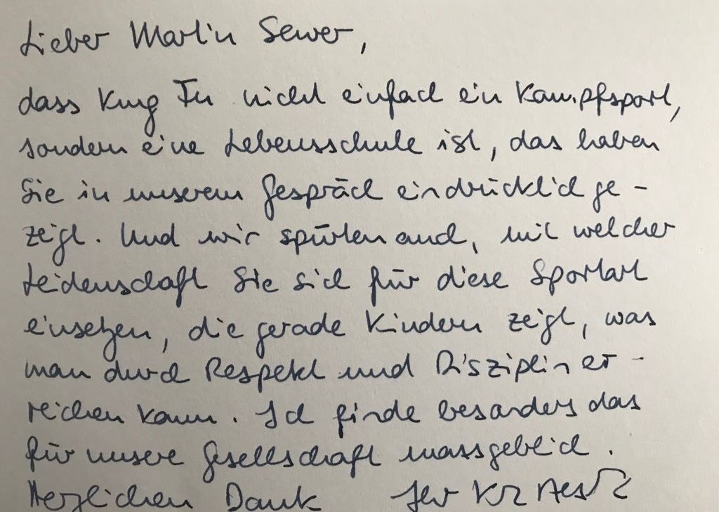 Nicht lange nach meinem Interview bei SRF und der Sendung «Aeschbacher» erreichte mich diese liebe Dankeskarte von Herrn Aeschbacher selbst. Auch Ihnen herzlichen Dank für die tolle Sendung und den unvergesslichen Abend. – Grossmeister Martin Sewer