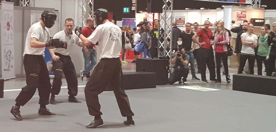Die Kung Fu Schule Martin Sewer durfte am Samstagmorgen den Auftakt der Expo mit dem glückbringenden Löwentanz sowie verschiedenen Formen geben. Später folgte ein spektakulärer Lei Tai-Kampf zwischen Kevin Bet und Ivan Carvalho. Auch wenn es sich hierbei lediglich um einen Showkampf handelte, schenkten sich die Schüler zur Freude des Publikums nichts. Den Zuschauern wurde duch die angewendeten Techniken schnell bewusst, wie effizient unser System ist.