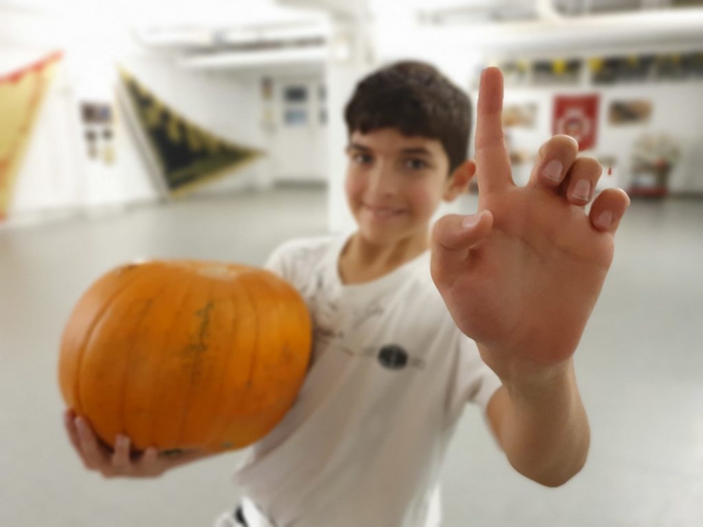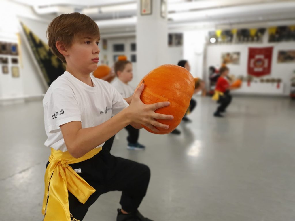 Halloween kann auch ganz anders gruselig sein. Gruselig hart. Denn bei uns wird Halloween mit Kürbissen von den Erlebnishöfen Jucker Farm trainiert, bis die Schüler Geister sehen. Zu der Suppe, die die Schüler danach mit den Kürbissen zuhause machen können, haben sie dann in jedem Fall eine sehr enge Beziehung.
