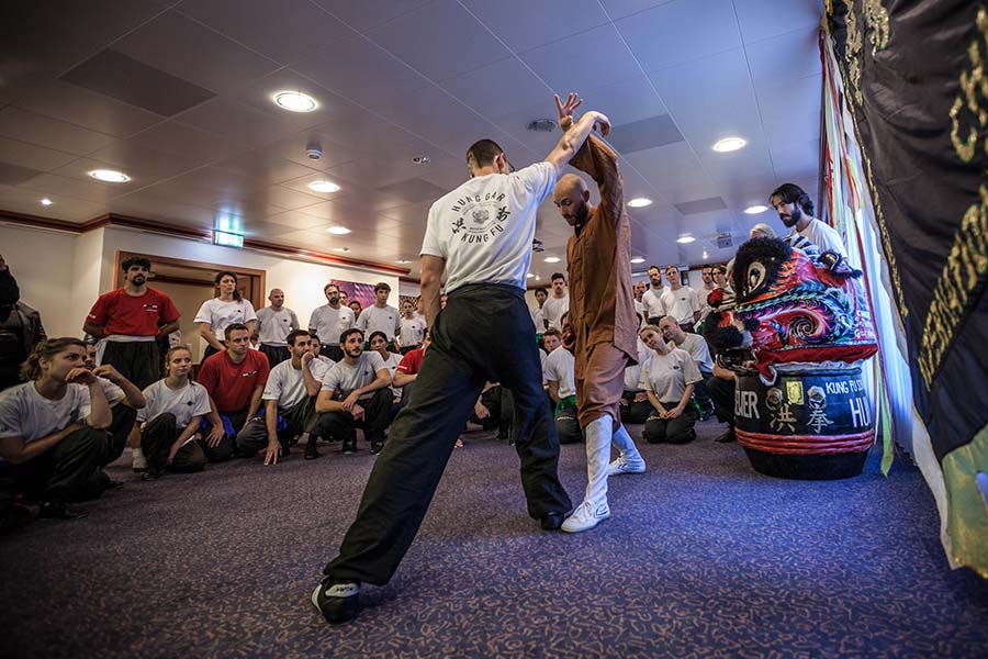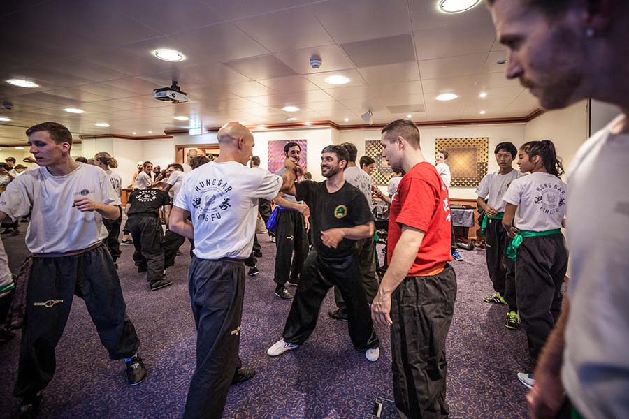 Um 15.00 Uhr starteten die Seminare im Konferenzraum des Crowne Plaza Hotels, angefangen mit einem Einblick in nördliches Shaolin Kung Fu des Shaolin Chan Tempel Luzern (Sifu Roger Stutz). Der langjährigen Freundschaft zu unserem Meister, Grossmeister Martin Sewer, hatten wir Schüler es zu verdanken, dass wir an besagtem Nachmittag vor allem Wurftechniken und Kombinationen aus dem Nordstil ausprobieren durften.