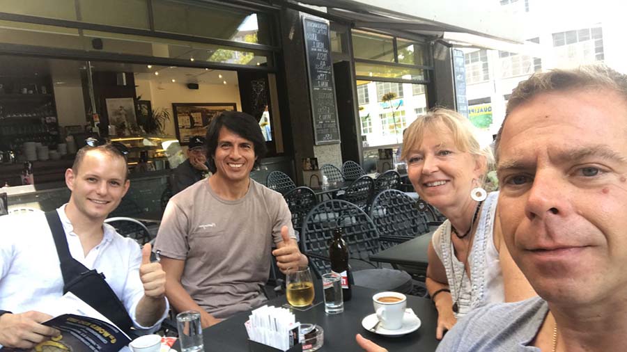 Bild (v.l.n.r.): Zo Gaau Alexander Klug, Sifu Luis Alfonso Quispe Rojas, seine Partnerin Nicole, Grossmeister Martin Sewer.